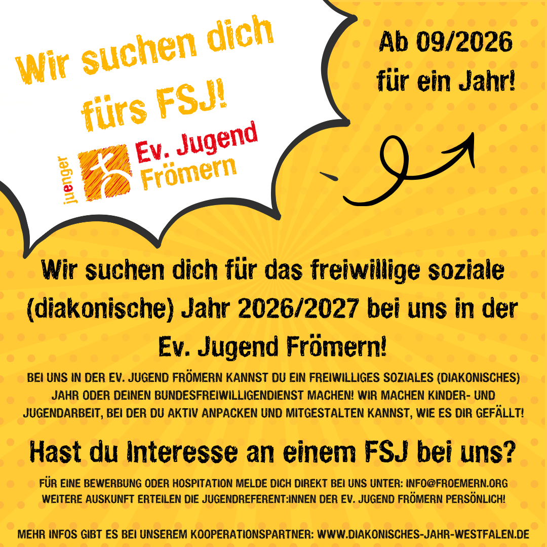 Wir suchen dich für das freiwillige soziale (diakonische) Jahr 2026 / 2027 bei uns in der Ev. Jugend Frömern.